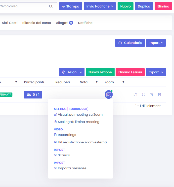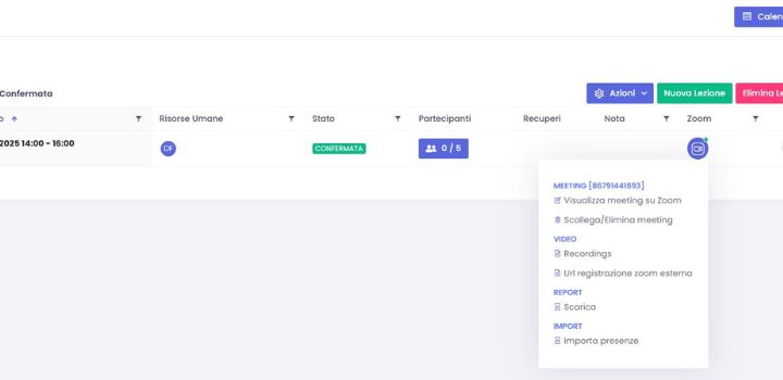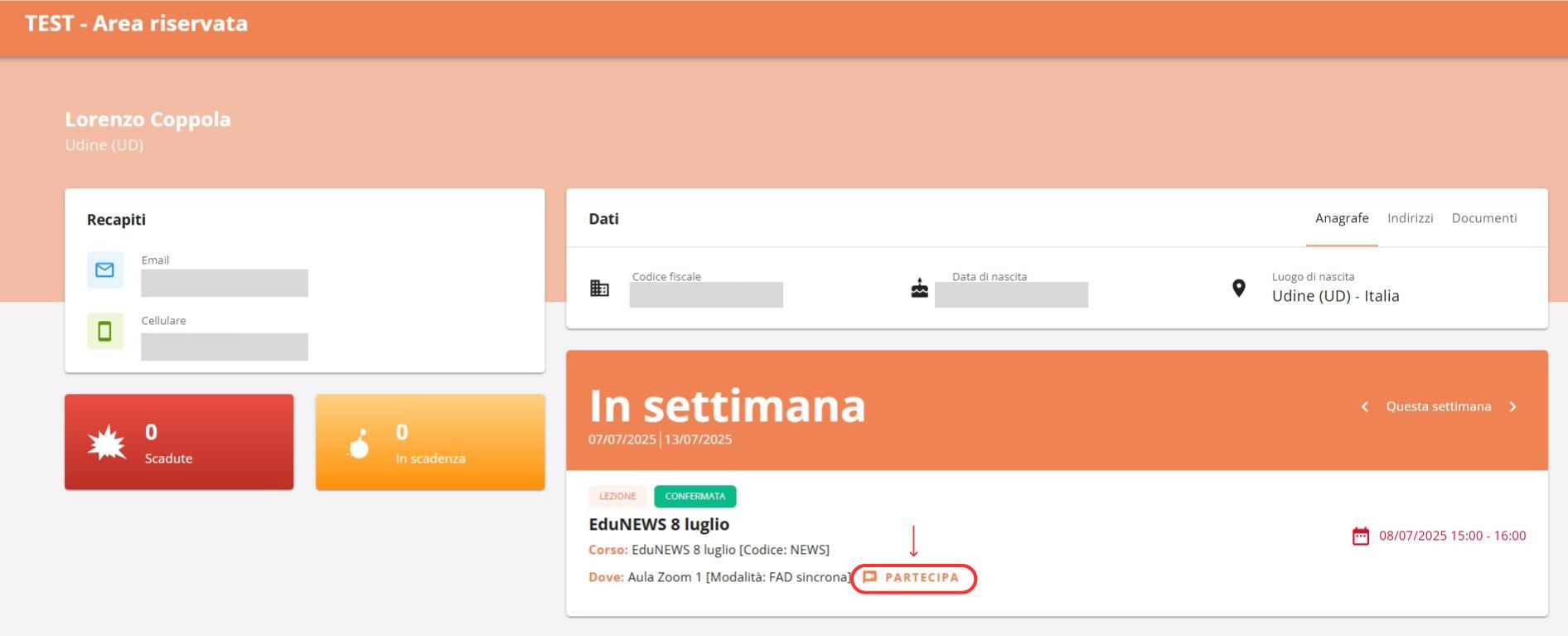riservata dell’iscritto. Sempre nell'area riservata, c'è la possibilità di caricare il link alla registrazione del corso o della lezione.